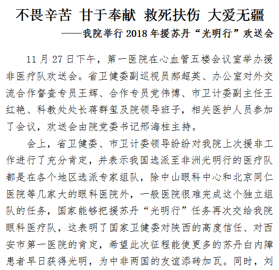 啄木鸟 举行2018年援苏丹“光明行”欢送会