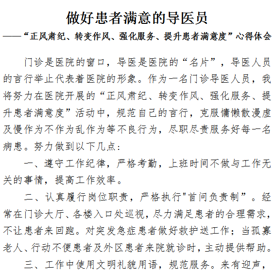 做好患者满意的导医员 ——专题活动心得体会