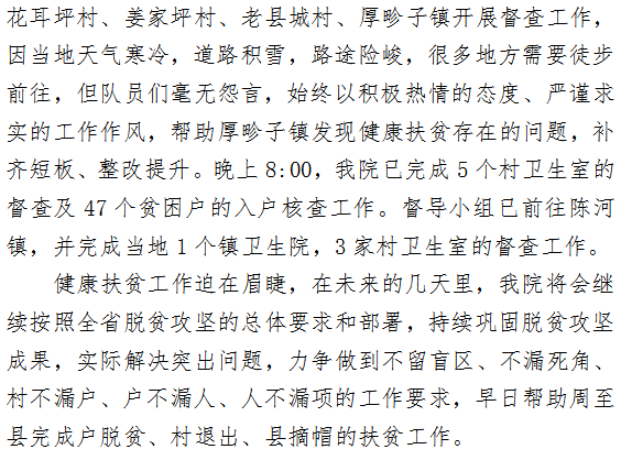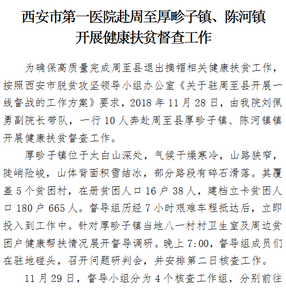 啄木鸟 赴周至厚畛子镇、陈河镇开展健康扶贫督查工作