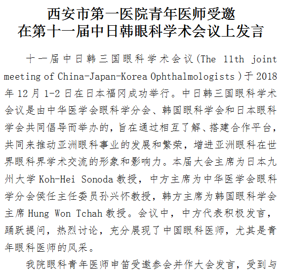啄木鸟 青年医师受邀在第十一届中日韩眼科学术会议上发言