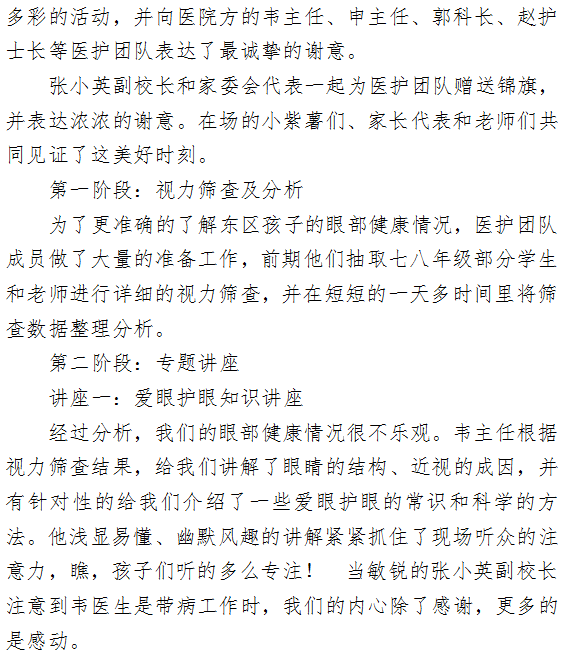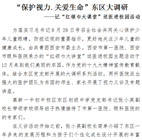 “保护视力.关爱生命”东区大调研——记“红领巾大课堂”送医进校园活动