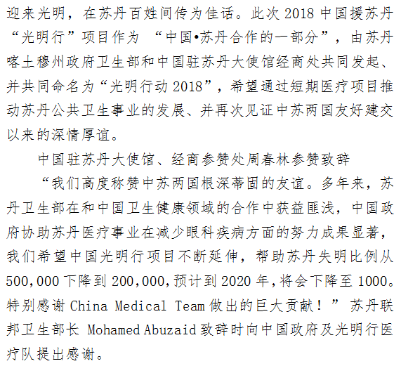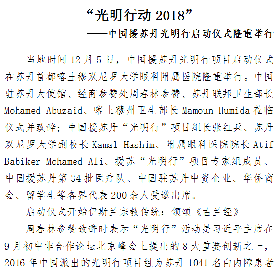 “光明行动2018” ——中国援苏丹光明行启动仪式隆重举行