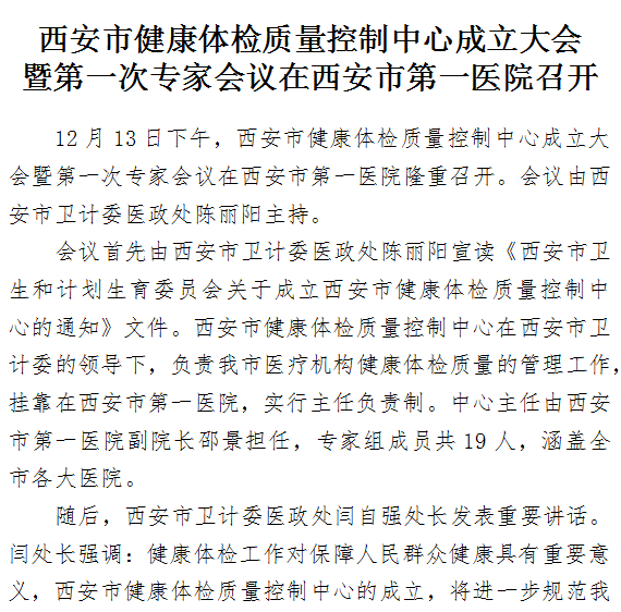 西安市健康体检质量控制中心成立大会暨第一次专家会议在啄木鸟 召开