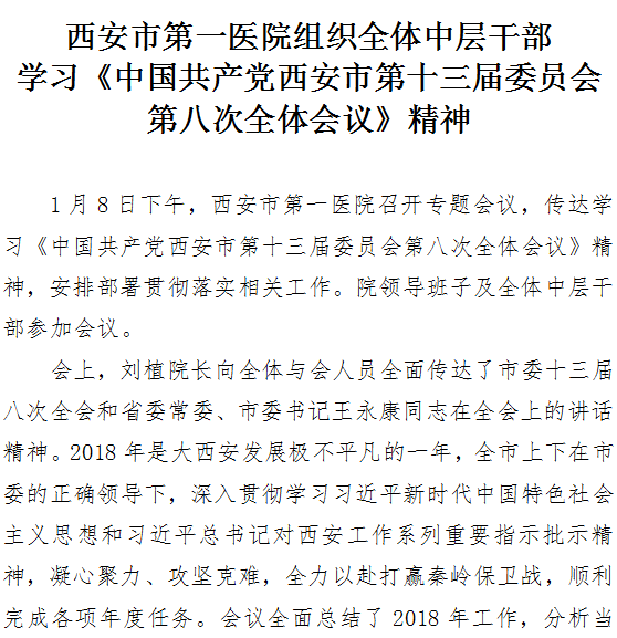 市医院组织学习《中国共产党西安市第十三届委员会第八次全体会议》精神