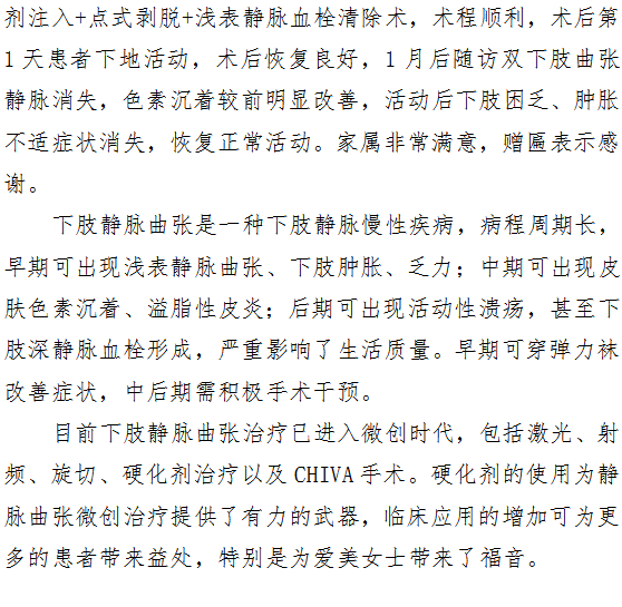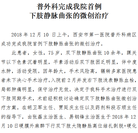 普外科完成啄木鸟 首例下肢静脉曲张的微创治疗