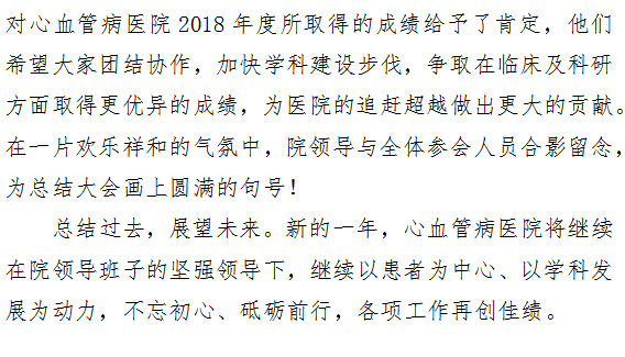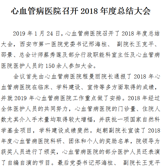 心血管病医院召开2018年度总结大会