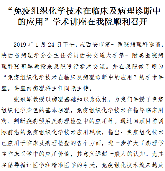 “免疫组织化学技术在临床及病理诊断中的应用”学术讲座在啄木鸟 顺利召开