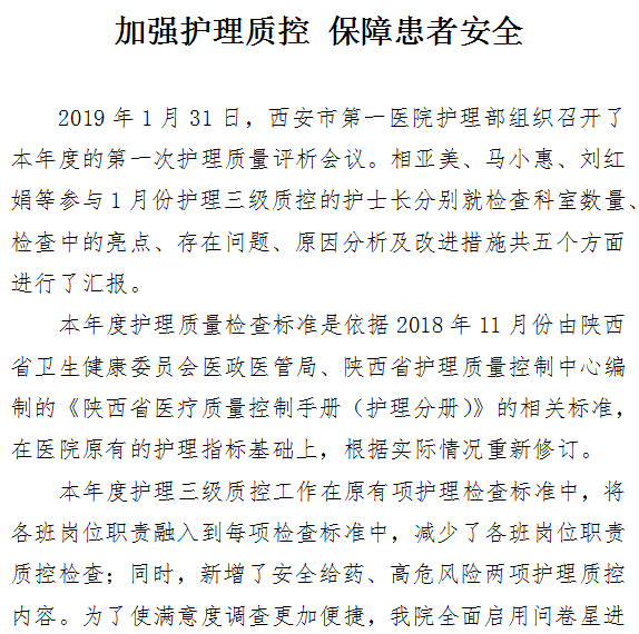 加强护理质控 保障患者安全