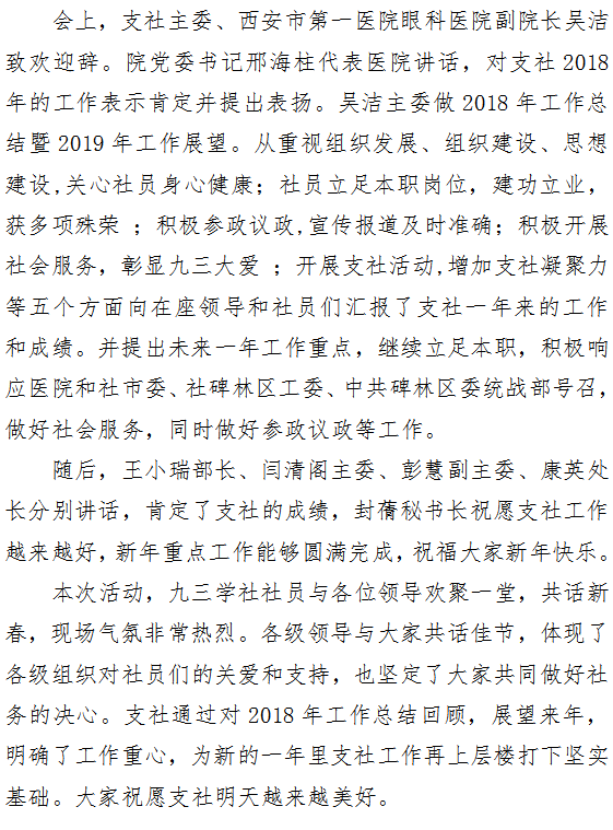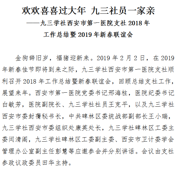欢欢喜喜过大年 九三社员一家亲 ——九三学社啄木鸟 支社2018年工作总结