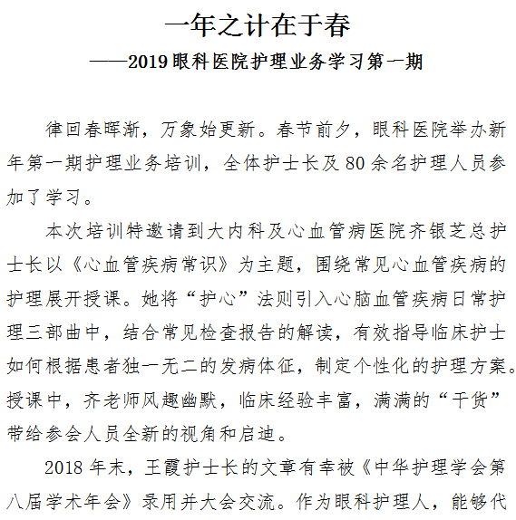 一年之计在于春——2019眼科医院护理业务学习第一期