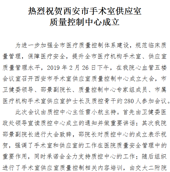 热烈祝贺西安市手术室供应室质量控制中心成立