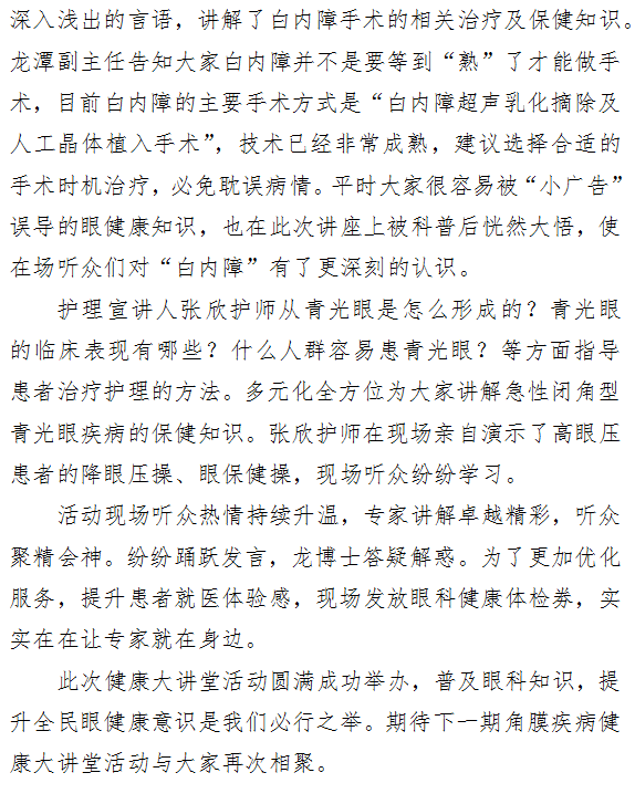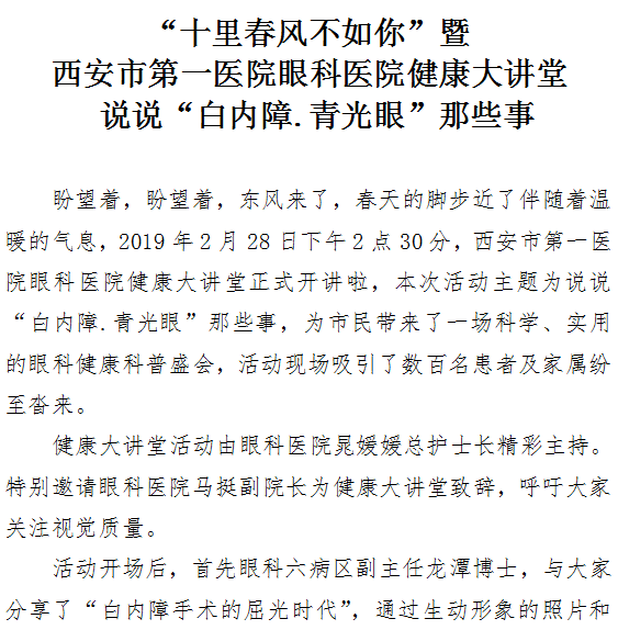 “十里春风不如你”暨啄木鸟 眼科医院健康大讲堂 说说“白内障.青光眼”