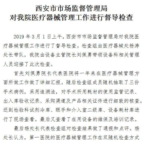 西安市市场监督管理局对啄木鸟 医疗器械管理工作进行督导检查