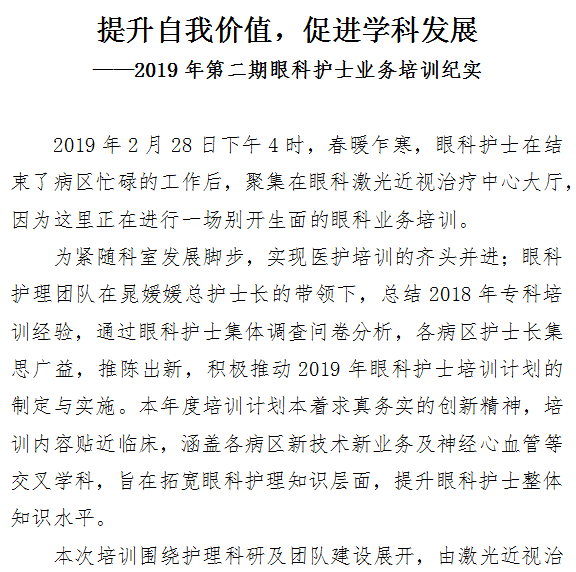 提升自我价值,促进学科发展——2019年第二期眼科护士业务培训纪实