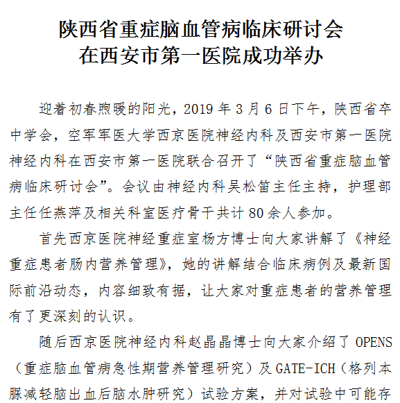 陕西省重症脑血管病临床研讨会在啄木鸟 成功举办
