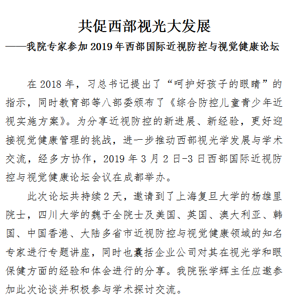 共促西部视光大发展——啄木鸟 专家参加2019年西部国际近视防控与视觉健康论坛