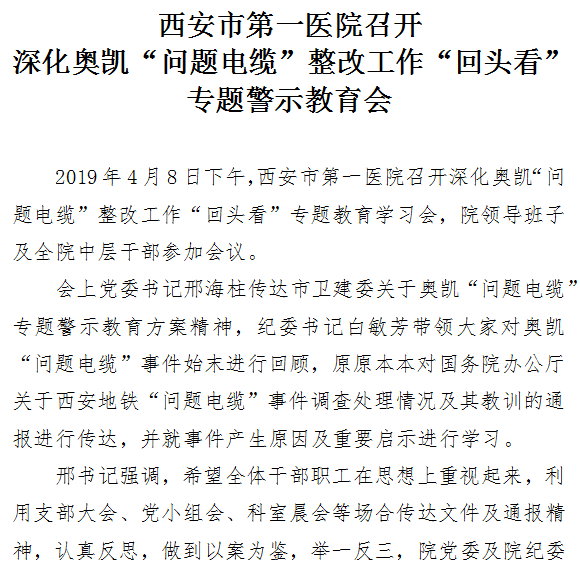 啄木鸟 召开深化奥凯“问题电缆”整改工作“回头看”专题警示教育会