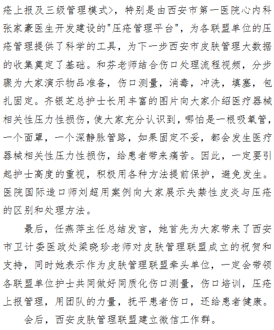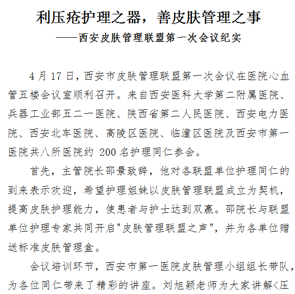 利压疮护理之器,善皮肤管理之事——西安皮肤管理联盟第一次会议纪实