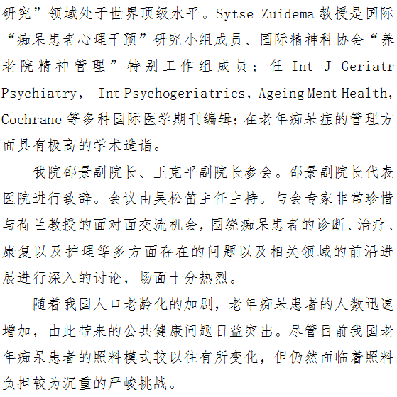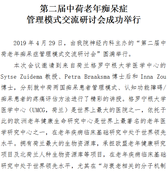 第二届中荷老年痴呆症管理模式交流研讨会成功举行