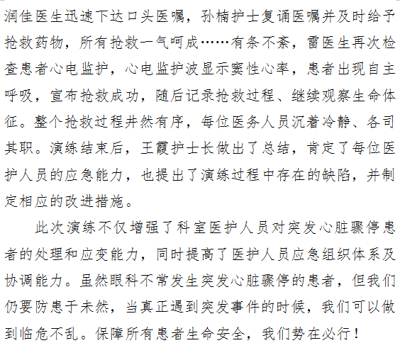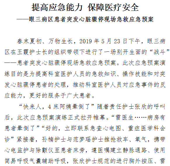 提高应急能力 保障医疗安全——眼三病区患者突发心脏骤停现场急救应急预案