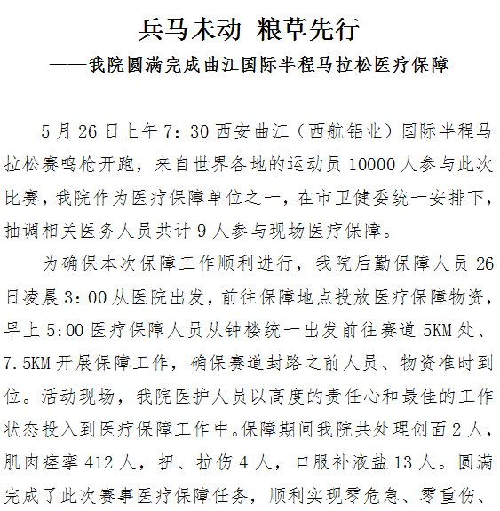 兵马未动 粮草先行——啄木鸟 圆满完成曲江国际半程马拉松医疗保障