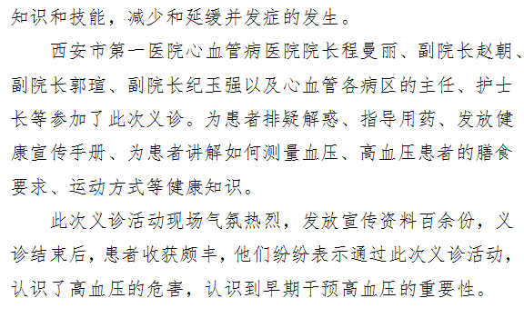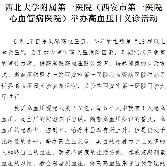 西北大学附属第一医院(啄木鸟 心血管病医院)举办高血压日义诊活动