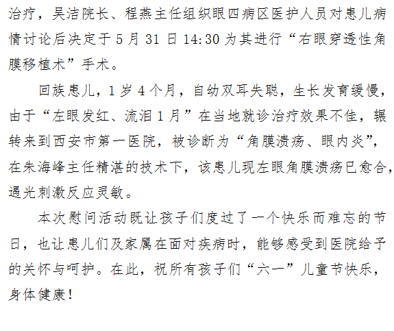 重建心灵之窗 角膜病区医暖童心——眼四病区“六一”慰问活动