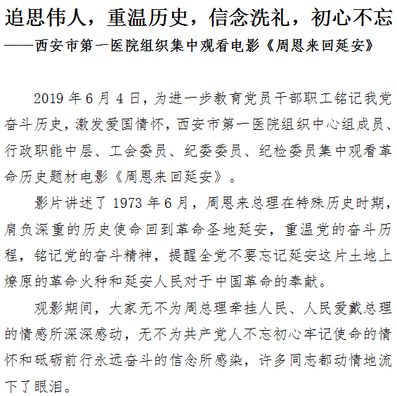 追思伟人,重温历史,信念洗礼,初心不忘——市一院组织集中观看电影《周恩来回延安》