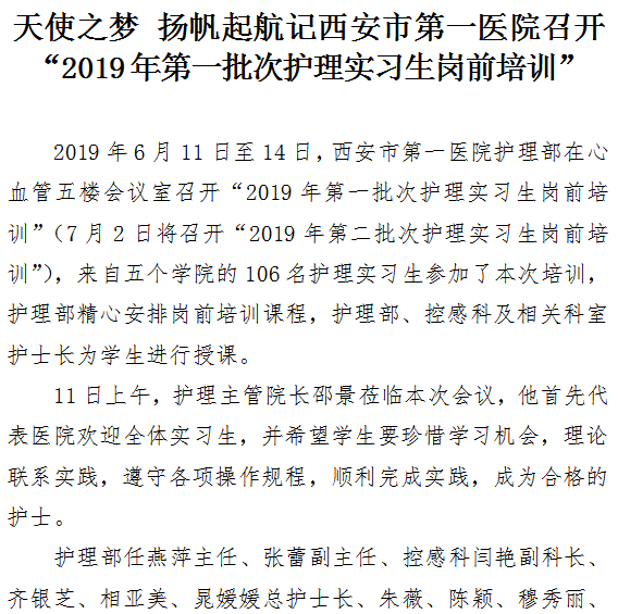 天使之梦 扬帆起航记啄木鸟 召开“2019年第一批次护理实习生岗前培训”