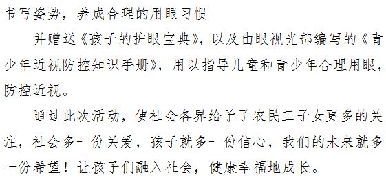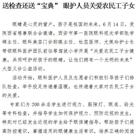 送检查还送“宝典” 眼护人员关爱农民工子女