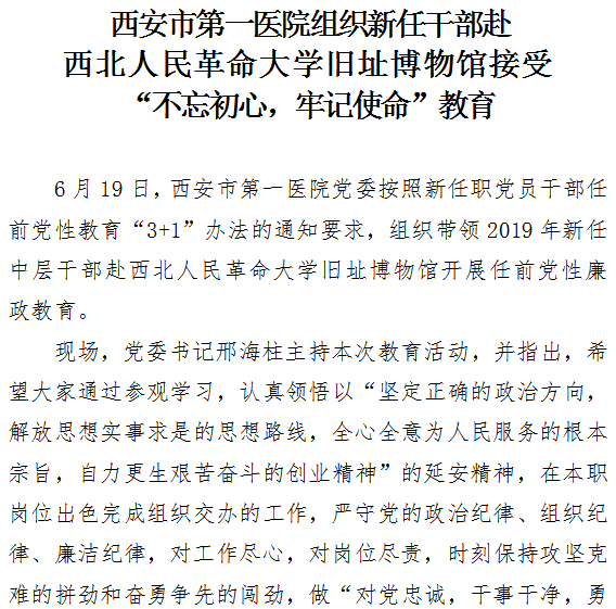 市一院组织新任干部赴西北人民革命大学旧址博物馆接受“不忘初心,牢记使命”教育