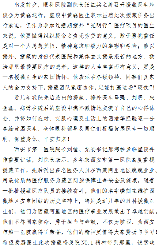 啄木鸟 欢送眼科黄磊同志参加陕西省第五批“组团式”援藏医疗队