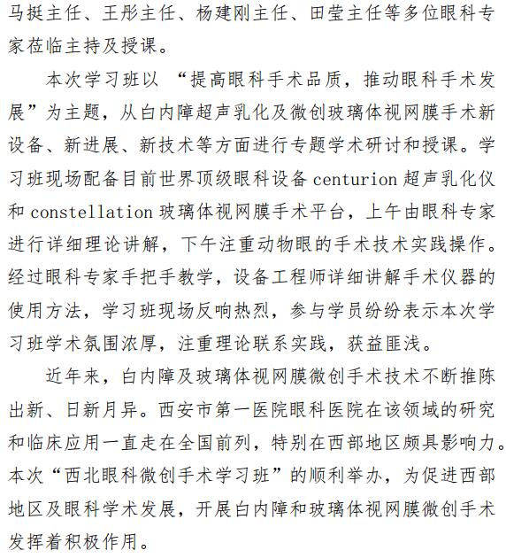 “西北眼科微创手术学习班”顺利举办