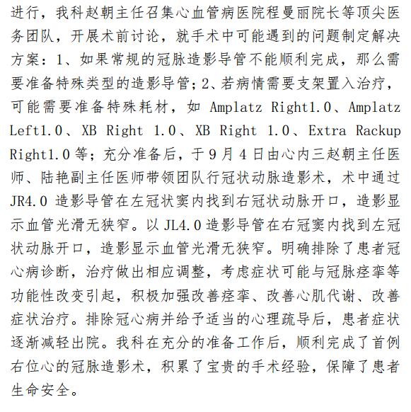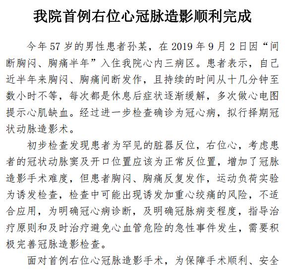 啄木鸟 首例右位心冠脉造影顺利完成