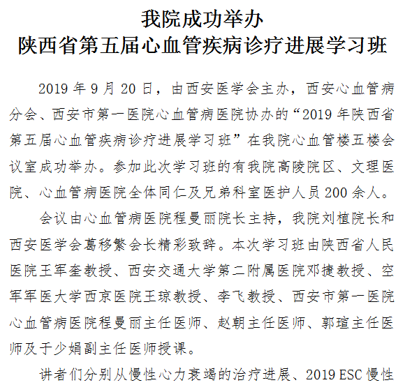 啄木鸟 成功举办陕西省第五届心血管疾病诊疗进展学习班