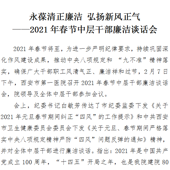 永葆清正廉洁 弘扬新风正气 ——2021年春节中层干部廉洁谈话会