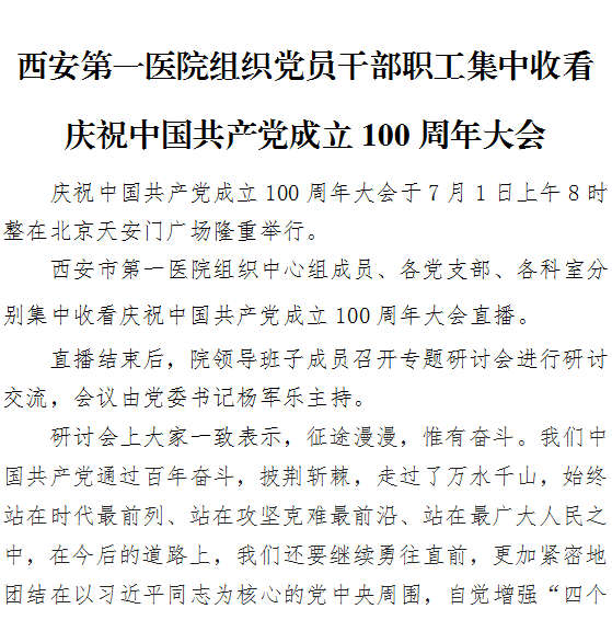 西安第一医院组织党员干部职工集中收看 庆祝中国共产党成立100周年大会