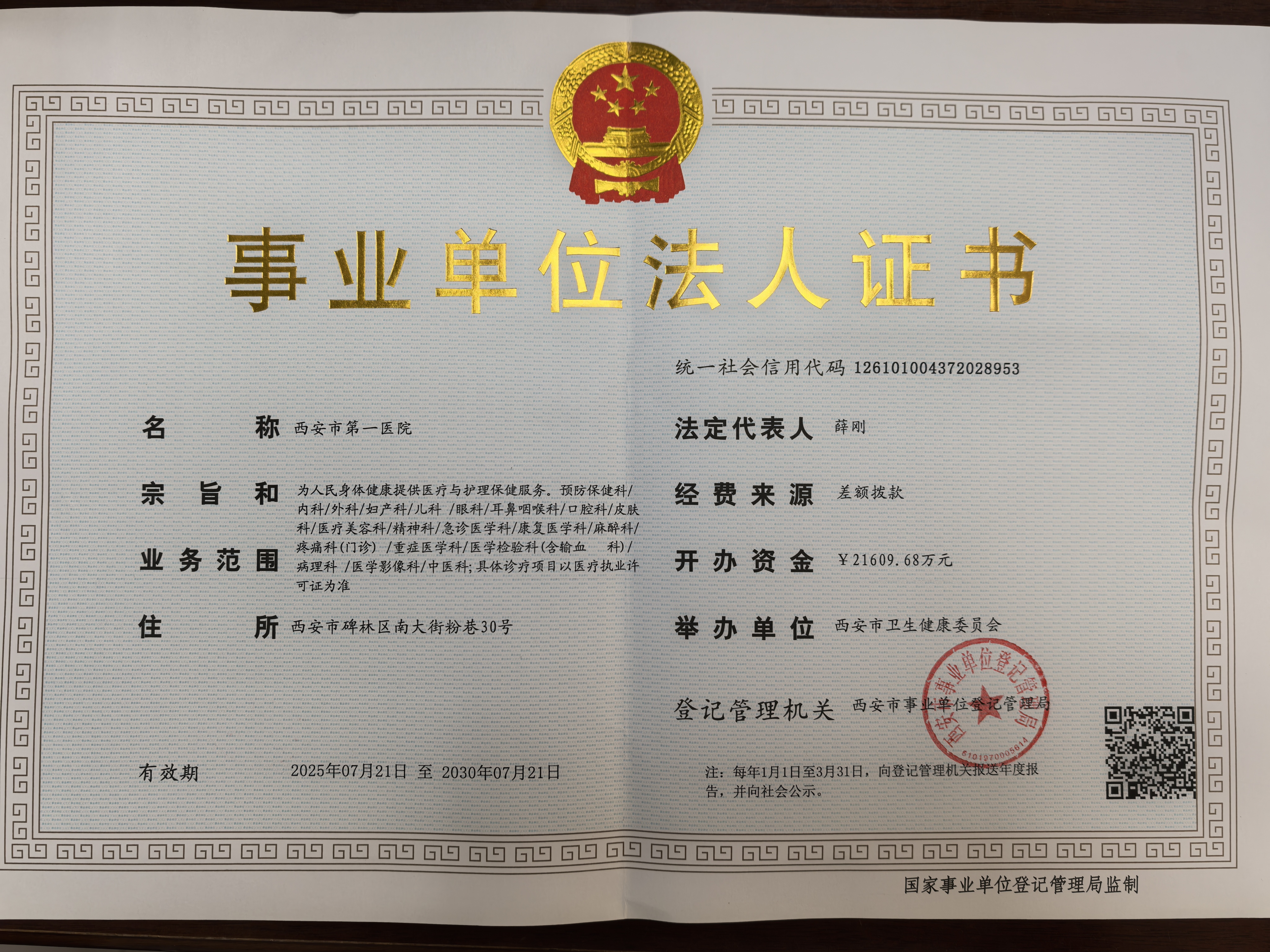 ”,2017年9月成为西北大学附属第一医院。医院年门诊量近100万人次,出院人数6.1万人次,完成手术与操作例数超5万例,平均住院日6.1天。先后荣获“全国卫生系统先进集体”“陕西省卫生行业文明单位”“陕西省先进集体”“西安市五一劳动奖状”等荣誉称号。