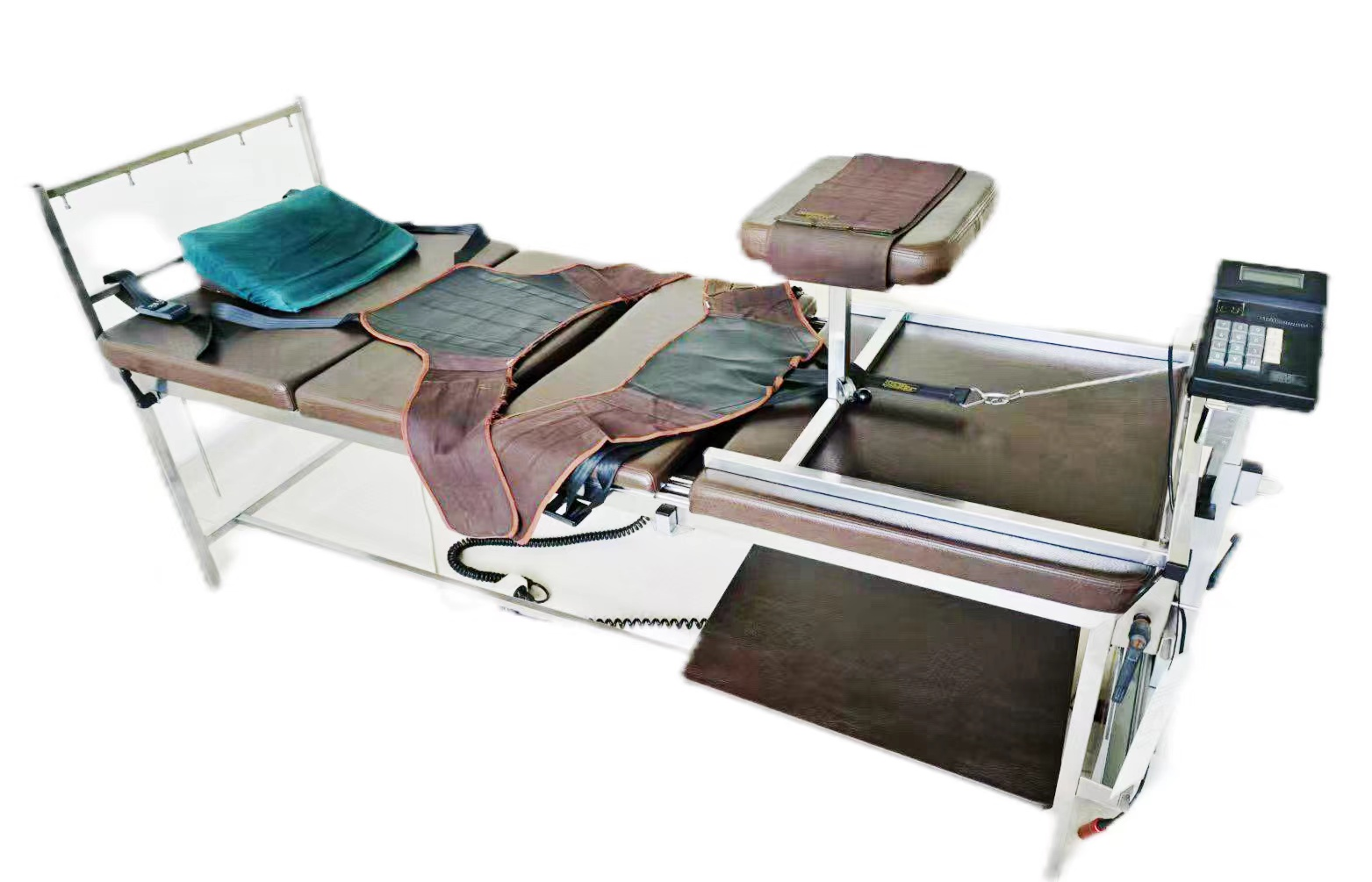德国进口综合牵引设备特点:是电脑控制间歇脉动式牵引。克服了持续牵引时牵引带直接压迫局部肌肉,血管,时间长反射性引起痉挛及血管收缩等。而间歇牵引在间歇期使肌肉血管得以休整,弥补了持续牵引的不足。主要针对颈椎间盘突出,颈椎综合征,腰椎间盘突出等脊柱关节疾病 。